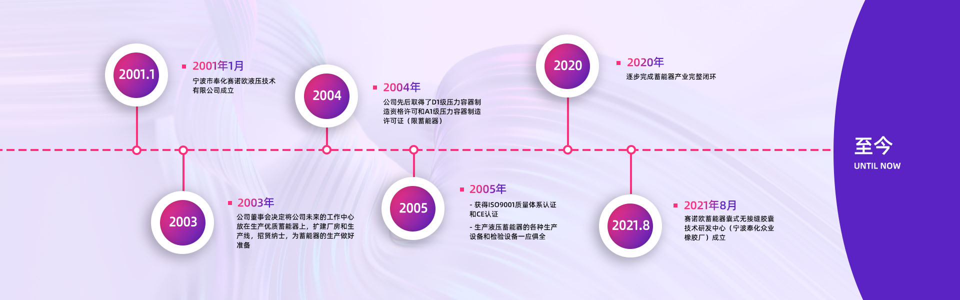 寧波市奉化賽諾歐液壓技術(shù)有限公司創(chuàng)建于2001年7月,是國內(nèi)優(yōu)秀的液壓蓄能器專業(yè)制造公司,制造設(shè)備齊全,檢測手段完善。同時(shí)也是探索蓄能器囊式結(jié)構(gòu)一體化的科研創(chuàng)新型企業(yè)。 2001年,公司董事會決定將公司未來的工作重心放在生產(chǎn)優(yōu)質(zhì)蓄能器上。公司一方面著手于廠房擴(kuò)建和生···